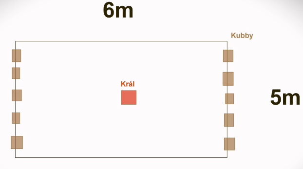 SHODIT KRÁLE JE CÍL HRY – PODMÍNKOU JE SHODIT PŘEDEM VŠECKY KUBBY NA PROTIHRÁČOVĚ STRANĚ